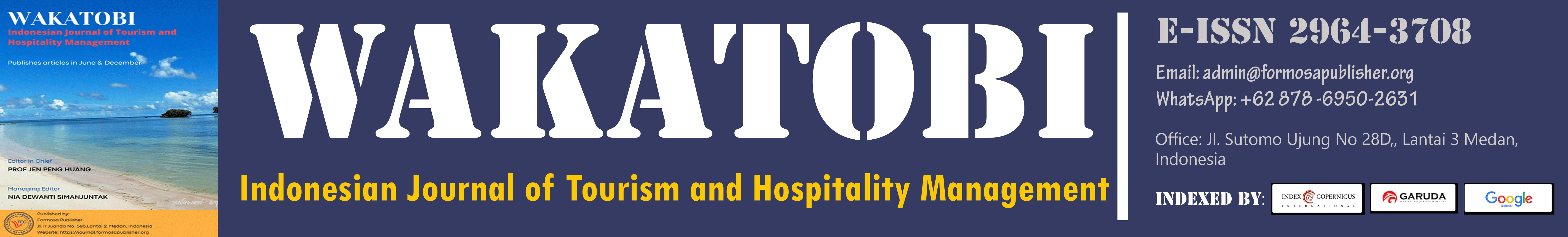 The Indonesian Journal of Tourism and Hospitality Management (WAKATOBI) aims to be a prominent channel for the publication of hospitality management and tourism research. The journal takes an interdisciplinary approach and includes planning and policy aspects of international, national, and regional tourism as well as specific hospitality management studies. The journal's articles reflect its holistic approach - including primary research articles, discussion of current issues, case studies, reports, and book reviews. The journal seeks to publish articles that are relevant to both academics and practitioners and are the results of double-blind reviews by at least two referees chosen by the editor for their expertise.